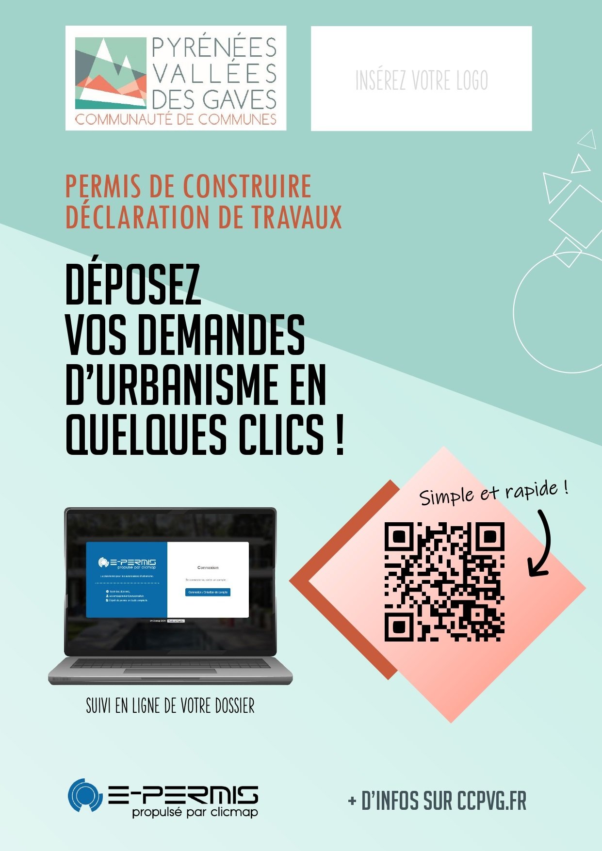 Pour ce faire, le site internet https://www.e-permis.fr vous permet de déposer en quelques clics et sans vous déplacer vos demandes d’urbanisme (permis de construire, déclaration préalable, certificat d’urbanisme, permis d’aménager, permis de démolir, déclaration d’intention d’aliéner, etc...).